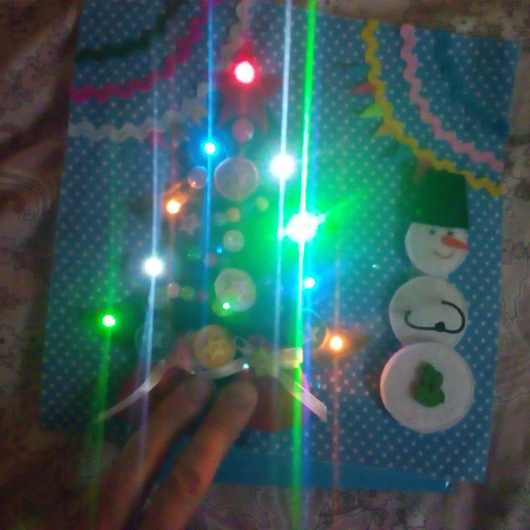 13. Передала работу мужу, он установил светодиоды, подсоединил провода к кнопкам и батарейкам.