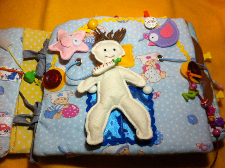 Развивающие игрушкиРешила сшить на подарок книжечку для своей крестницы, ей 3 годика У меня к вам, девочки, вопрос, может кто шил такую книгу, играют ли девочки в этом возрасте в такое? Просто опыта с девочками нет, два пацана))) И еще, хотят заказать подобную книгу, а я растерялась и цену назвать не могу( Может быть подскажете, сколько бы сами заплатили? Вариант посчитать себестоимость - не вариант, так как, где взяла материал, где был, что-то купила, что-то нашла)))