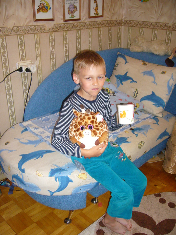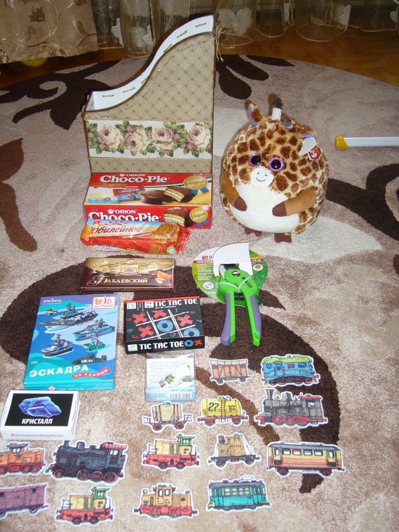 Для Димы подарки. Жирафик интересный такой,игра ,эксперимент в коробочке и 3д пазл,сегодня уже собрали.ОН счастлив!!!