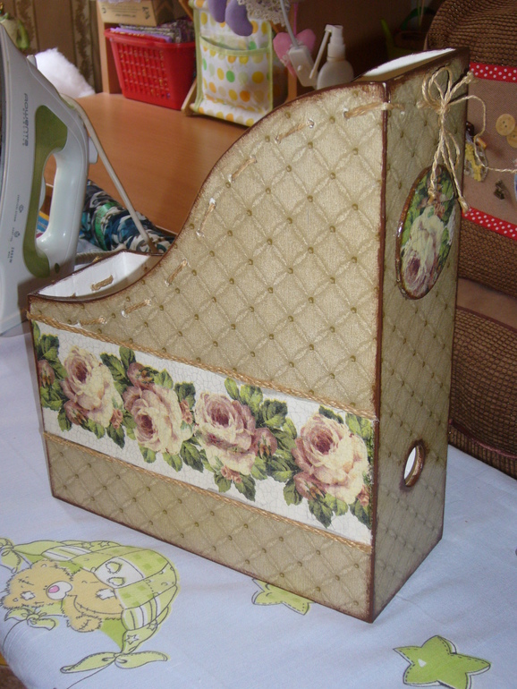 Вот ,тут уже поставила в свой рукодельный уголочек. Буду хранить в ней папки с выкройками,схемы и распечатки.