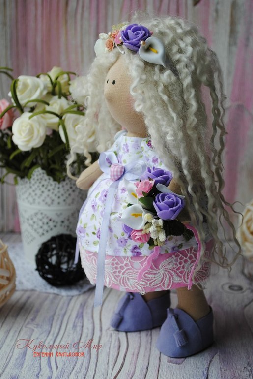 Вот такая получилась малышечка. Рост 28 см. Трикотаж и хлопок. Волосы - овечьи кудри. Очень нежная малышка)). Под катом много фото