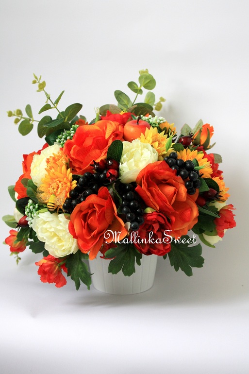 Сделала в оранжево красном ярком цвете букет, давно не использовала такие цвета.