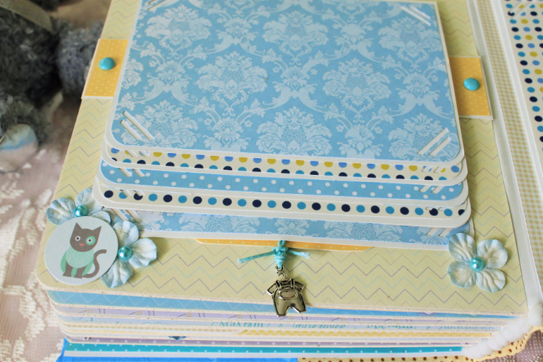 СкрапбукингЭтот альбомчик делала 1,5 месяца и вот что получилось - 8 разворотов (16 страниц) 20*20см, вмещает очень много фоток 10*15 см - аж 88 и еще несколько меньшего формата. Закрывается на хлястик с магнитной кнопкой. На обложке рамочка для фото 9*9см