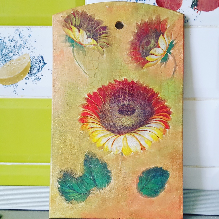 Разделочная доска, с применением кракелюра. На фото не очень видно трещинки, но они есть)