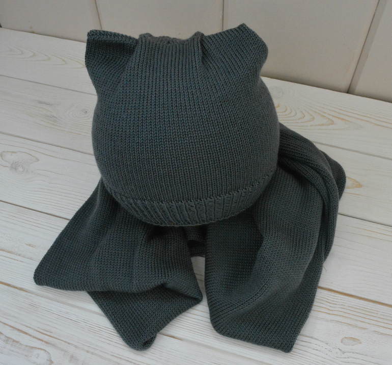 А вот такую шапочку-кошечку в комплекте со снудом я приберегла на осень: