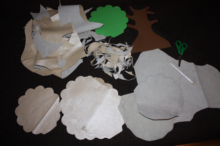 И так... началось все с того, что я захотела в качестве дополнения к обмену с Аней .. вырезать ей крону и ствол из кожи для создания такого дерева.. Потом я подумала, ну чего уж там.. можно и поискать все пуговки и детальки для его создания. Потом уже подумалось, а может сделать несколько таких наборов. Так и понеслось )))))) Вот несколько рабочих моментов процесса: