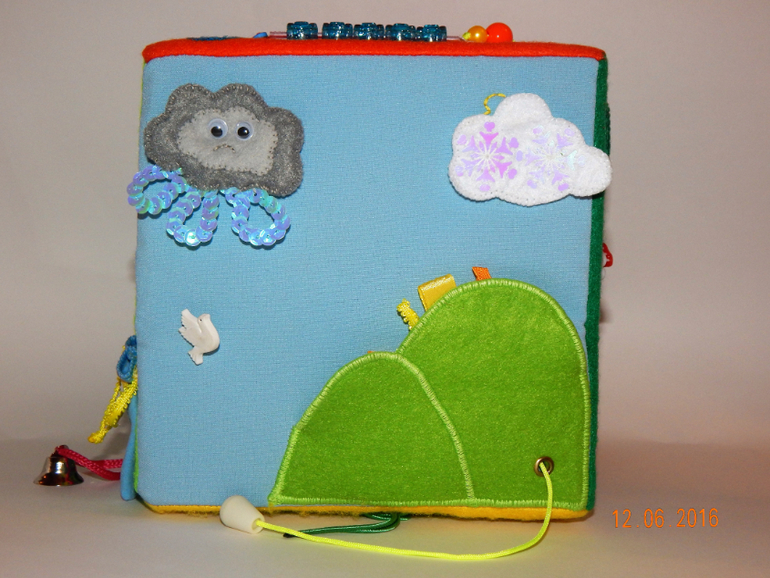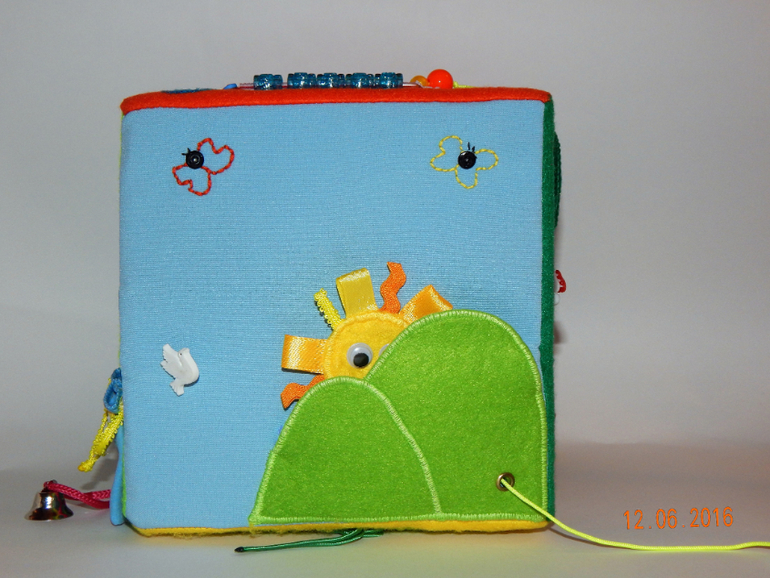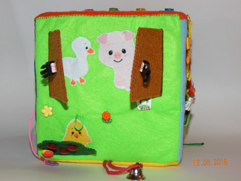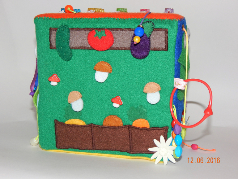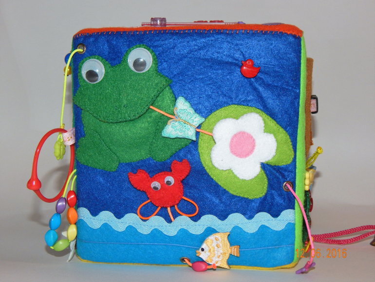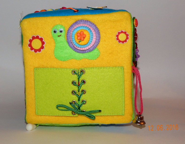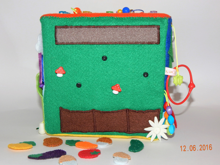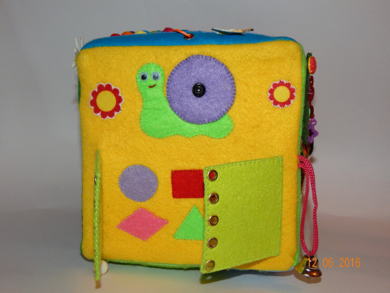 Развивающие игрушкиВот такой развивающий кубик из фетра, размер 17*17*17 см. Помогает развивать мелкую моторику, логику и воображение. С помощью кубика можно изучать цвета, счет, фигуры, различные застежки и многое другое. Далее больше 5 фотографий.