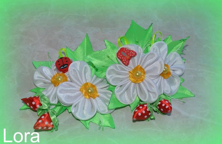 Цветы из ткани и форма. Канзаши. Украшения для волос.Делала вот такие резиночки племяннице
