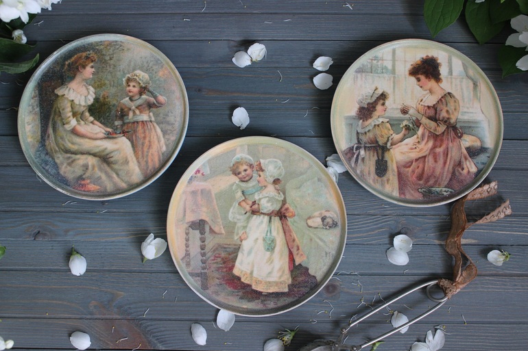 ДекупажЛюблю я такие винтажные открыточки просто жуть,ну разве можно без трепета смотреть на эти наивные сюжеты?эххххх жаль ,что в наше время так уже не рисуют,или не пишут....Сотворился вот такой наборчик для кухоньки,а в дружбу к нему записались панно в количестве трех штук!ВНИМАНИЕ много фото