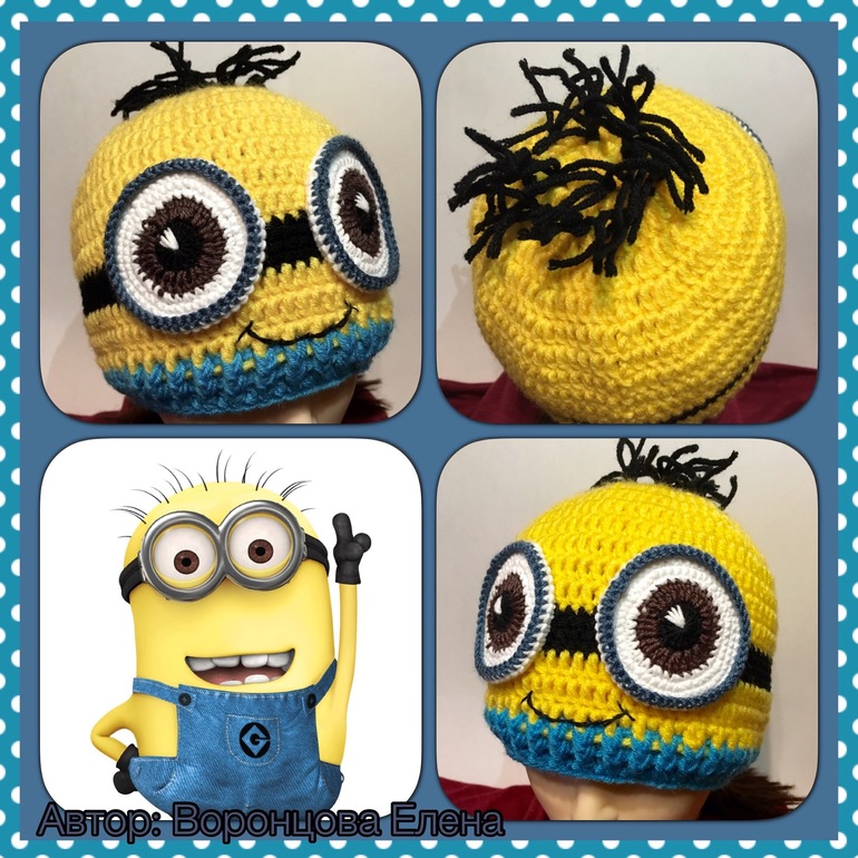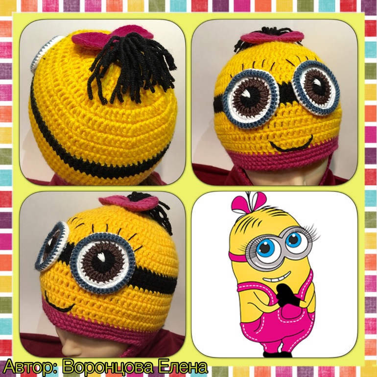 4. Шапка "Миньон девочка". Размер 52-54см. Пряжа "Кроссбред бразилии" Пехорка (в 3 нити).