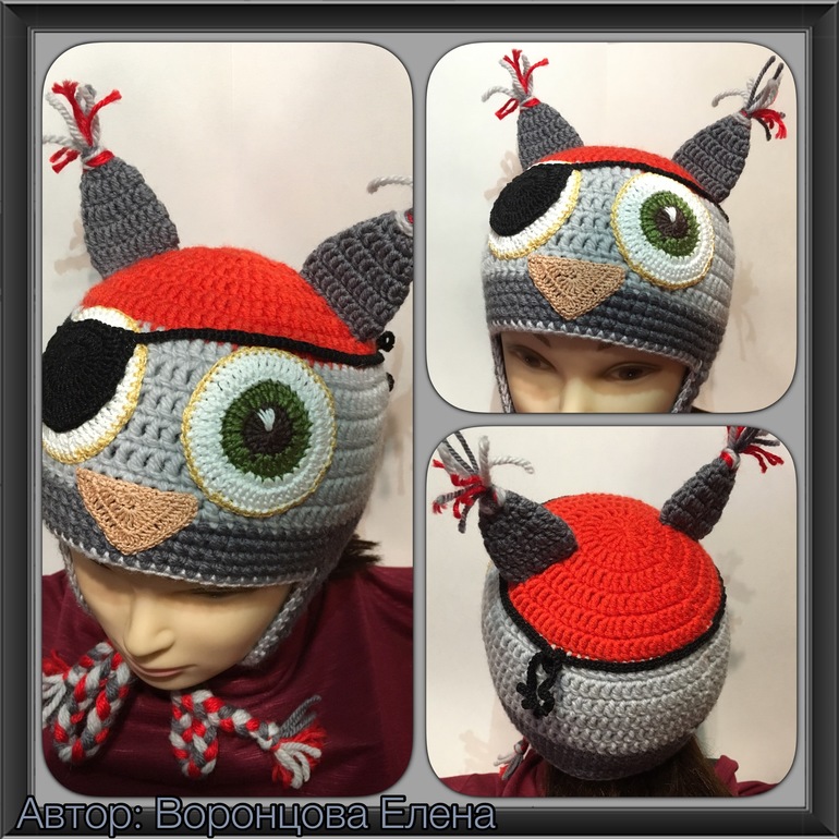 1. Шапка "Сова-пират" для мальчика. Размер 50-52см. Пряжа "Зимняя премьера" Пехорка.