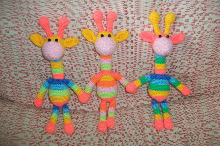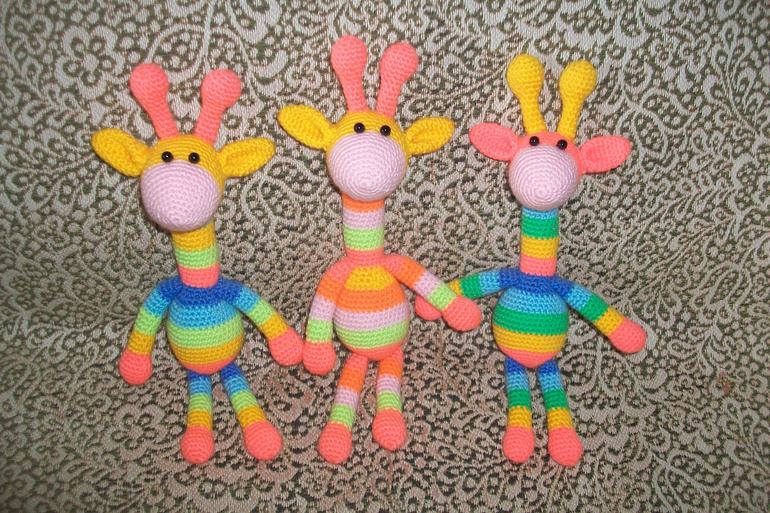 Вязание крючком (РАБОТЫ И СХЕМЫ)Связались новые жирафы, яркие, дружные и веселые. Будущие друзья детишек