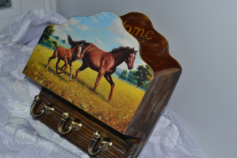 ДекупажВсем доброго вечера! вот такая вот ключница у меня получилась, не смогла пройти мимо этой грации и красоты (это я про лошадок)!