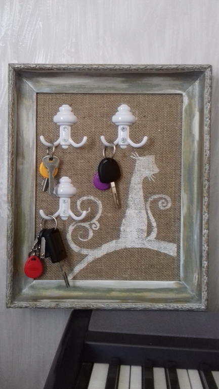 Вот смотрю порой на покупные, там 2-3 крючка... Куда? У нас: 3 комплекта ключей от квартиры, по 2 ключа от подвала, гаража, машины, от входа в детский садик, + мужнины ключи на работу... Куда это все девать...