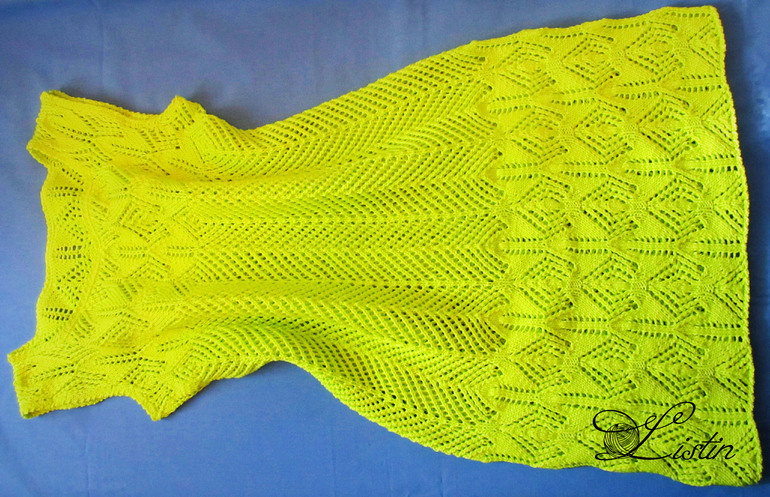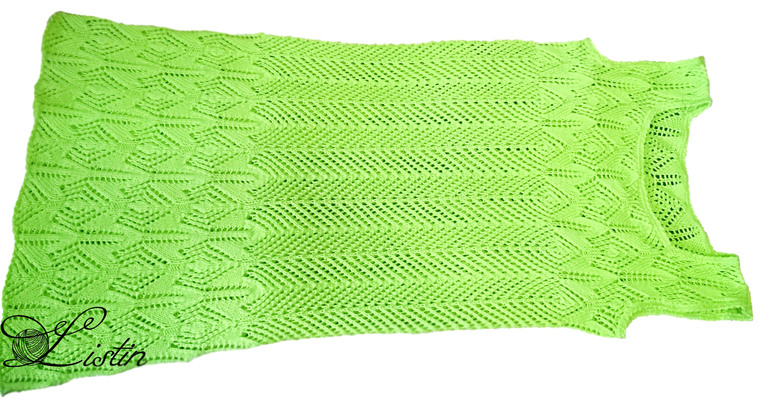 Я к вам с новой работой. Летнее ажурное мини-платье из хлопковой пряжи. Размер 40-42, длина 84 см. Ушло примерно 450 гр.