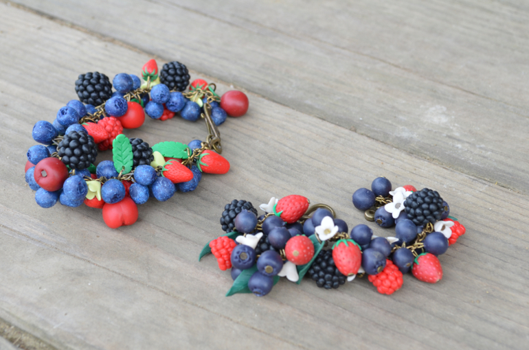 Лепка из пластики (полимерная глина) (ТОЛЬКО ГОТОВЫЕ РАБОТЫ)Когда я выбирала глину для детских морковок и яблок, о себе я тоже подумала)) Уж очень они красивые, эти ягодные браслеты! Поэтому взяла еще фурнитуры, а нужные цвета и так были.
