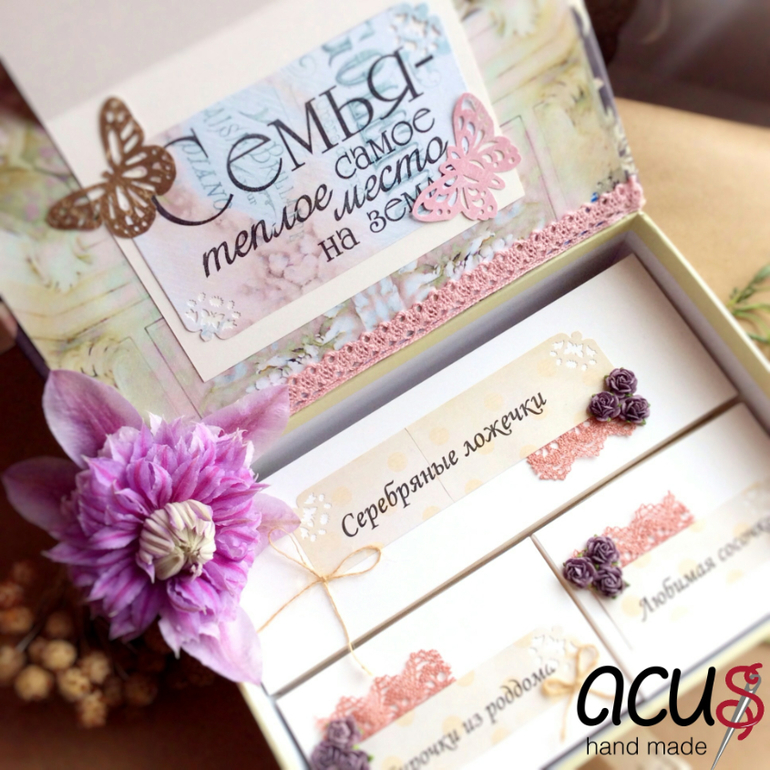 Так же надпись на самой шкатулочке "Семья - это место где начинается жизнь и любовь никогда не кончается"