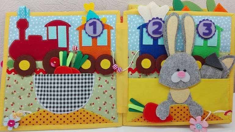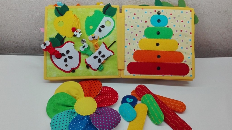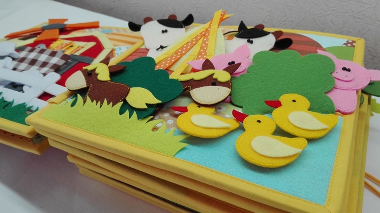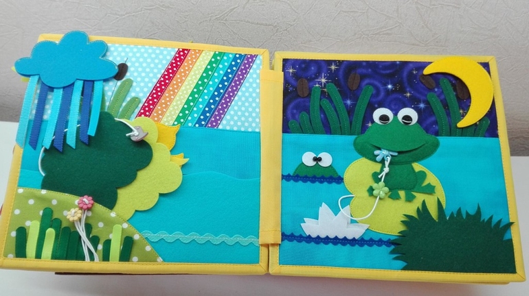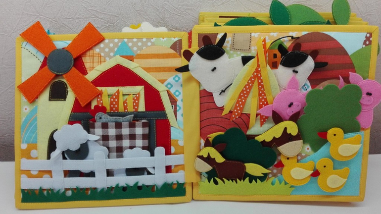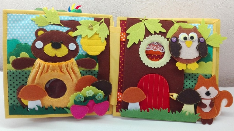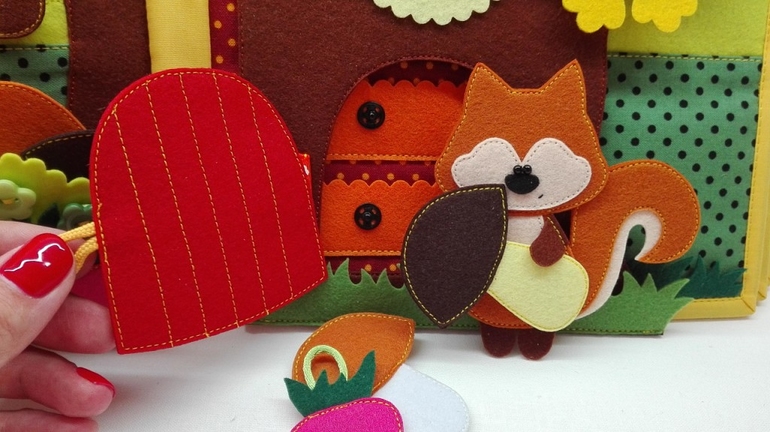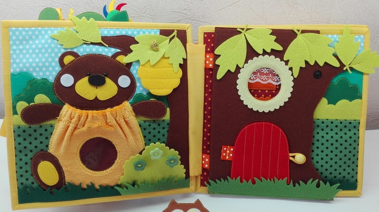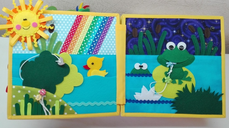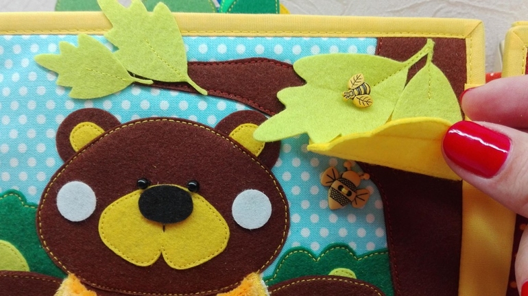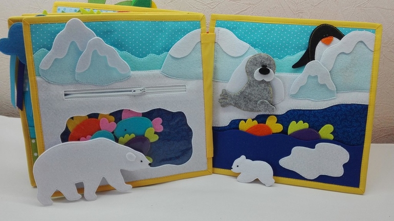 В этой книге нет крепления деталей на липучку. Все липучки заменены кнопками. Использованы сюжеты из книг формата 25*25, но съемные элементы не уменьшала, их очень удобно держать в руках. Далее много фото