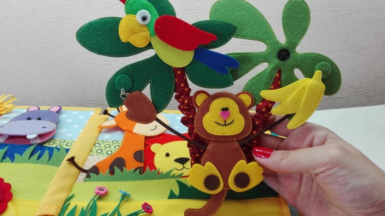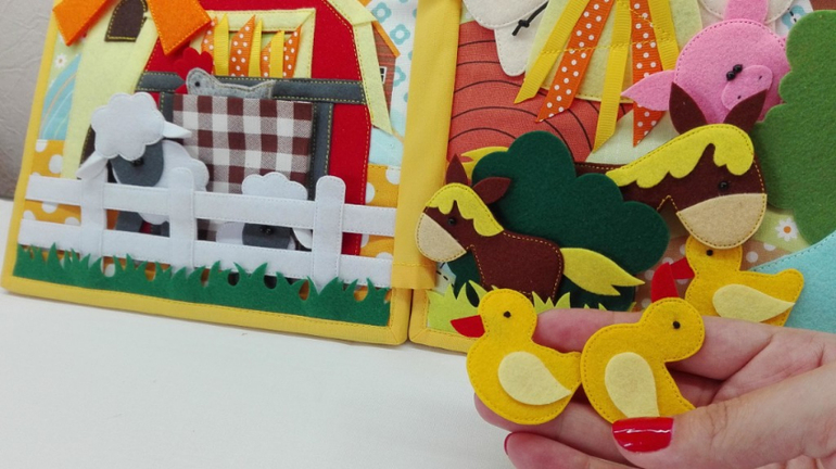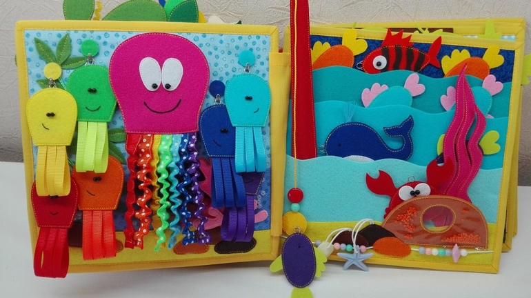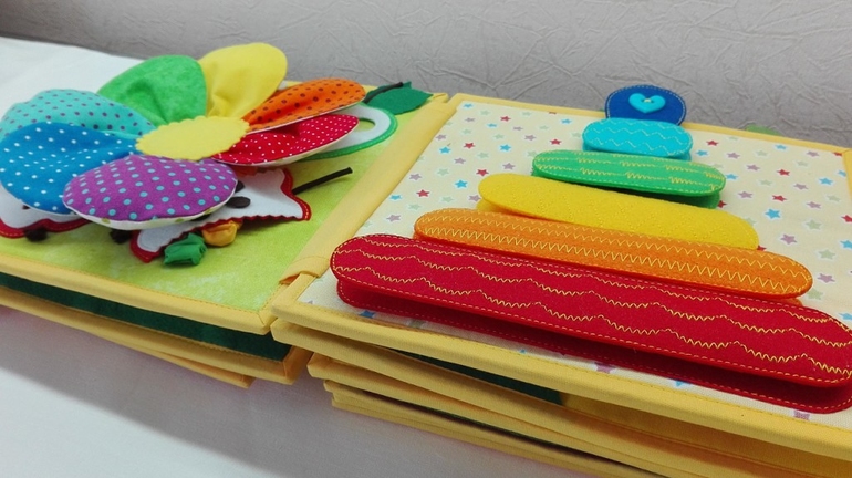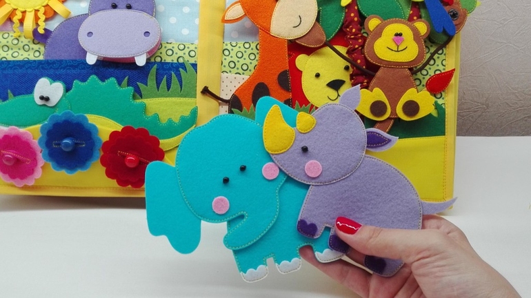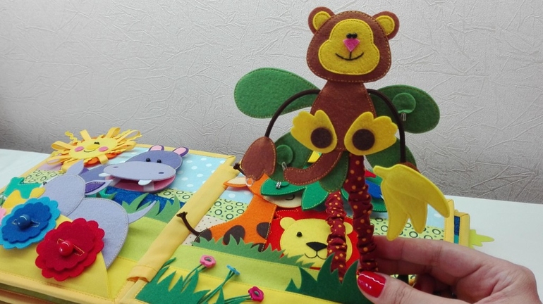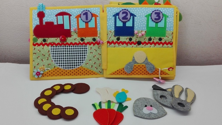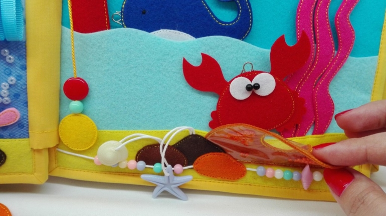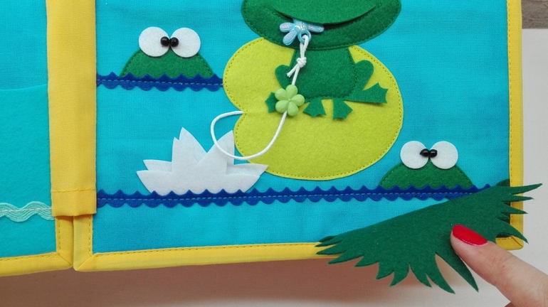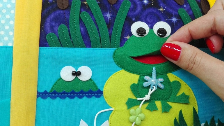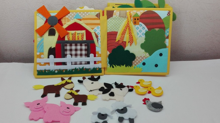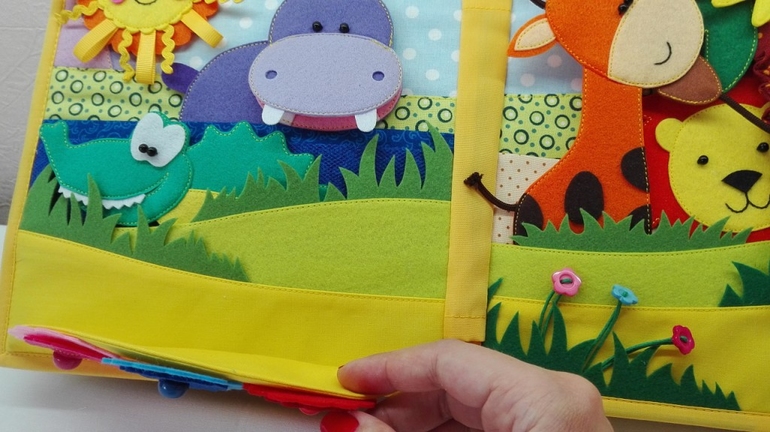 В этой книге нет крепления деталей на липучку. Все липучки заменены кнопками. Использованы сюжеты из книг формата 25*25, но съемные элементы не уменьшала, их очень удобно держать в руках. Далее много фото