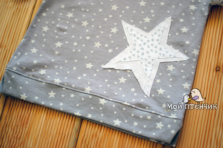 Выкройку рисовала прямо на ткани, отталкиваясь от основы лонгслива. Цельнокроенный рукав с отложной манжетой на кнопочке (я же пресс купила, теперь кнопочки у меня везде:)))