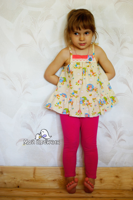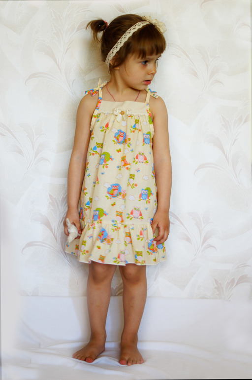 Сарафанчики из лёгкого хлопка (уже в четвёртый раз покупаю этих сов, уж очень они замечательные!). Шила к Moms Bazaar (суперское мероприятие в Красноярске, на котором представлены рукодельницы, магазины, лекторы, мастер-классы для детей и родителей). Маленький сарафан улетел, а побольше перепал для моей принцесски:)