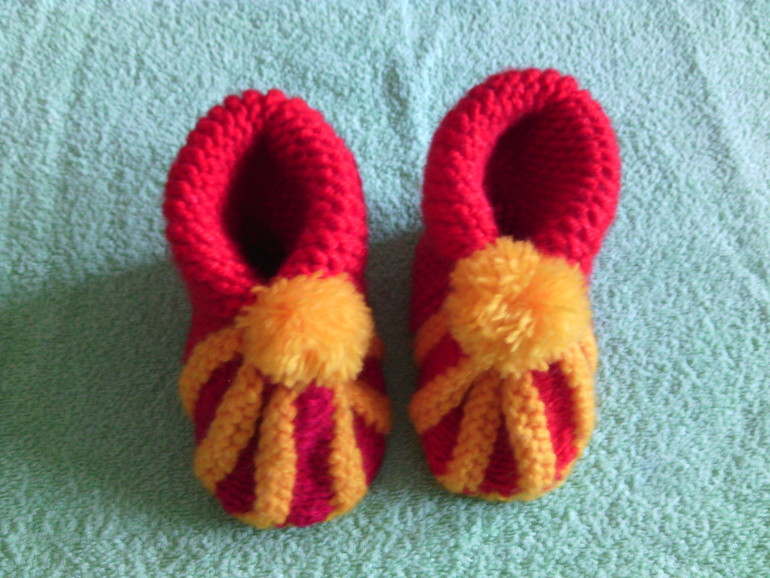 пинетки-тапочки для мой дочки лапочки (вязала спицами в один из новогодних вечеров)