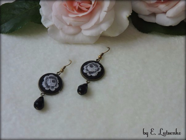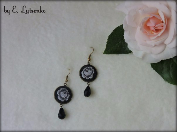 И серьги, тоже на основе старинной схемы. Вышивались как дополнение к броши:
