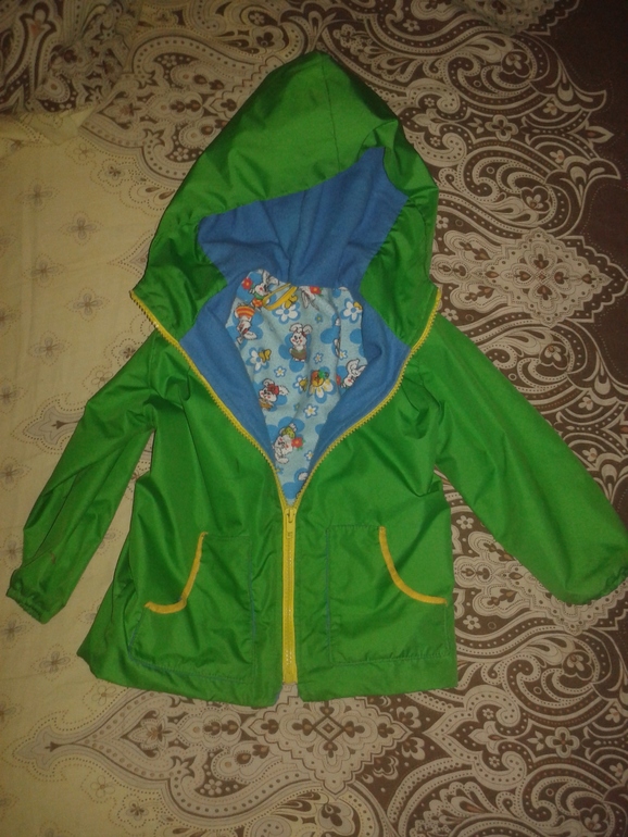 это курточка для сынишки, была сшита второй, после того как зеленую доча решила оставить себе, и не хотела давать братцу ее одевать