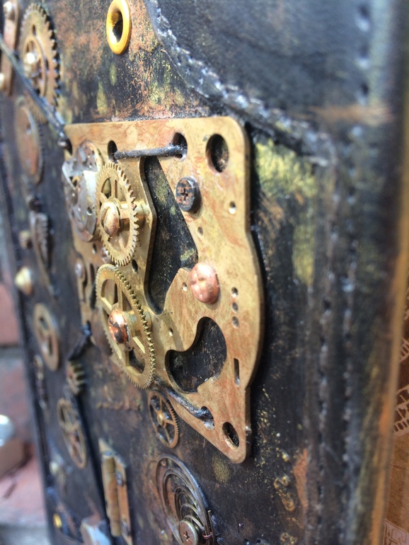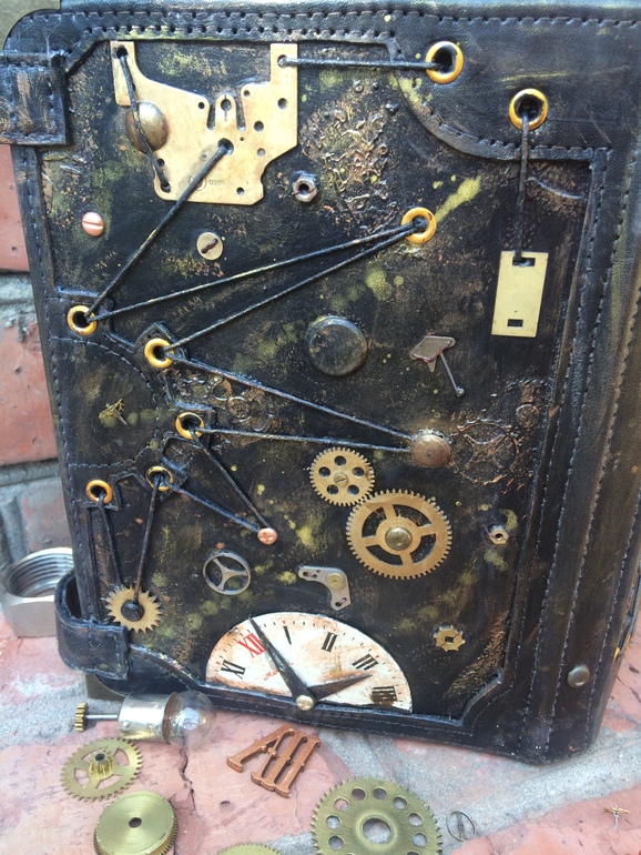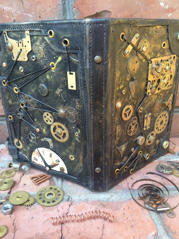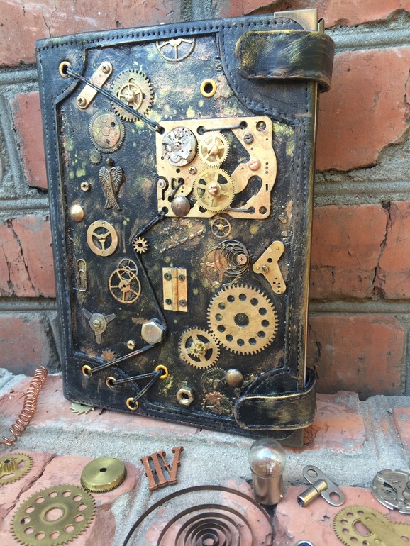 Вот такой блокнотик из натуральной кожи с настоящими часовыми механизмами и шестерёнками. Все детальки прошиты и закреплены. Спасибо, что заглянули!