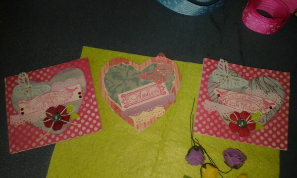 Три открыточки ручной работы - одна подарена мужу на годовщину, а остальные две думаю не множко переделать под себя и подарить близким)