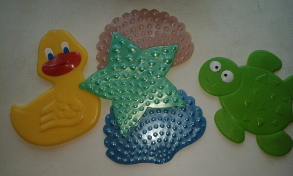 А малышам достались - резиновые мини коврики в ванную на "липучках". Смотрите - какая красотень! Кстати старший уже оценил и теперь постоянно когда нужно купатся - не соглашается пока мама не поцепит "утю", "жаку", "зии" и "акуси" (перевод - утя - утка, жака - жаба, зии - звезды, акуси - ракушка.