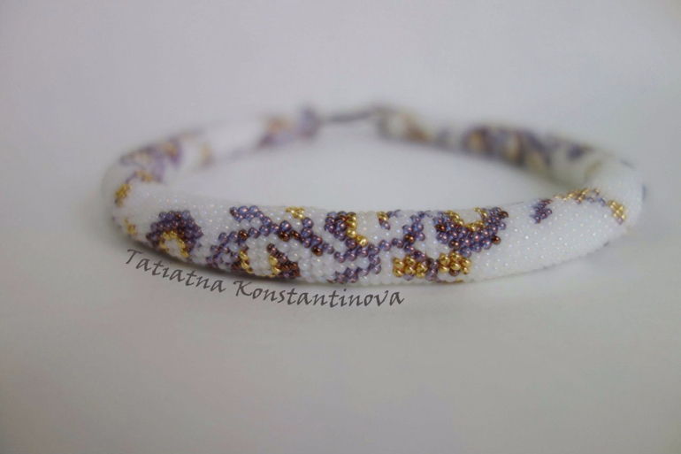 Сначала это были обычные фенечки, потом посложнее работы пошли. А теперь бисер соединился воедино с другим моим любимым занятием - вязанием. Очень люблю вязаные жгутики. Покажу некоторые из них.