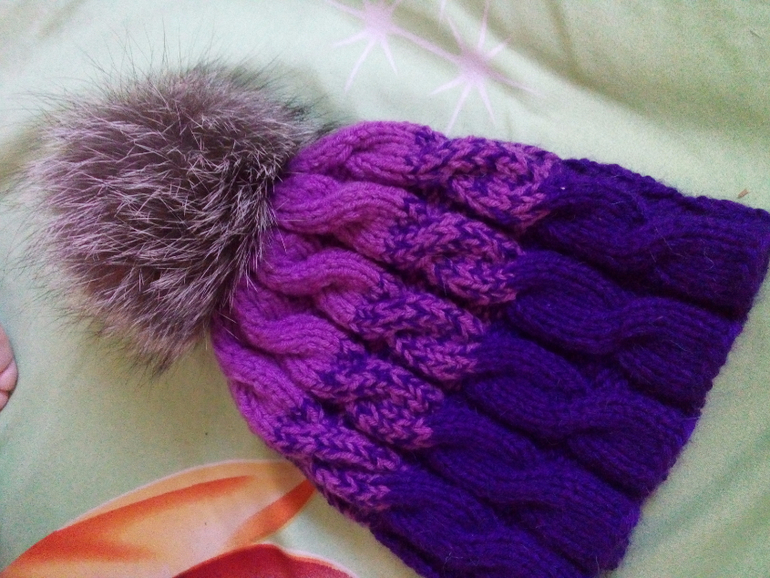 помпон из чернобурки,но от насыщенности цвета отливает в сиреневый)