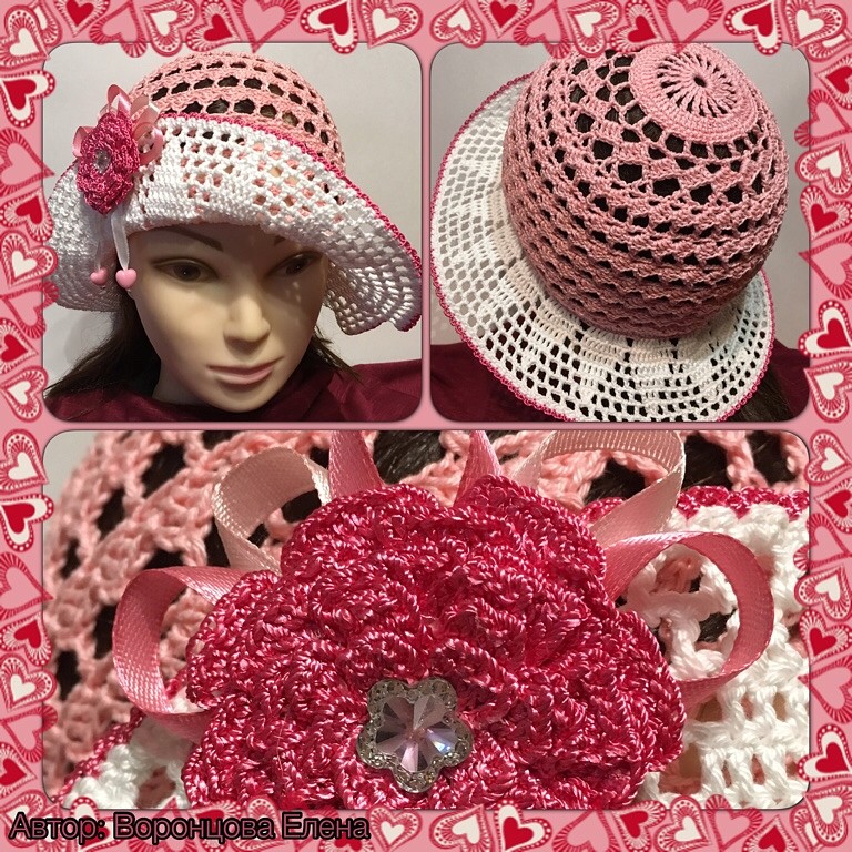 4. Панама "Летняя". Размер 48-50см. Пряжа Бегония, крючок 2,25. Брошь отстегивается.