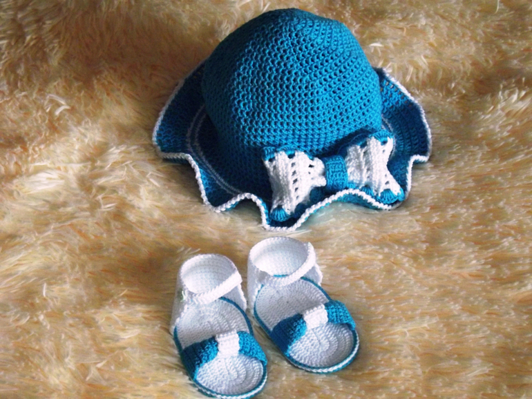 Вязание крючком (РАБОТЫ И СХЕМЫ)Всем доброй ночи! Хочу показать небольшой комплектик, который у меня связался для крестницы, понимаю, что панамочка вышла великовата для малявочки, но не переживаю, подрастёт будет мамочка ей одевать, а пока в пинетках покрасуется.
