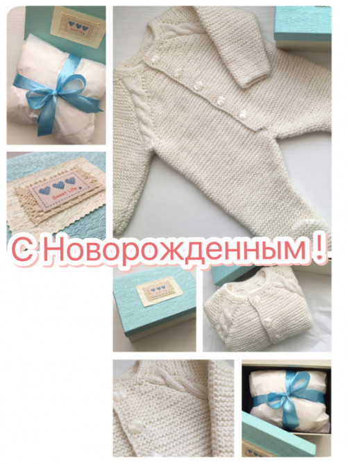 Вязание спицамиДавно не вязала спицами, вот такой комбезик родился на 3-6 месяцев, на осень как раз будет. Вязала "на глазок" со всеми вытачками, что бы нигде малышу не тянуло. Дочь упаковала, получился милый подарочек)))