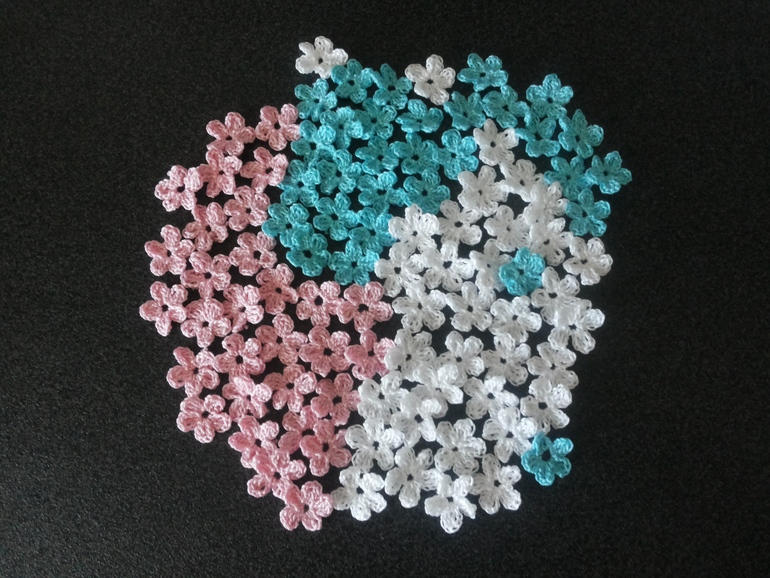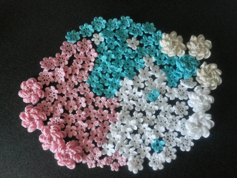 Вязание крючком (РАБОТЫ И СХЕМЫ)Цветочки связала для обмена с Еленой , ниточки виолет, крючок 1.25. На первом фото 145 цветочков :)