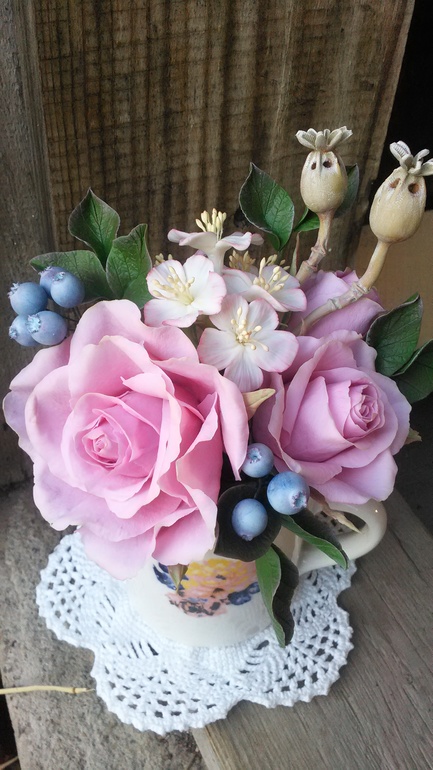 Обалденно!!! Розы, черничка все понастоящему!!! Это из чего, фарфор?! А в категории из фома...