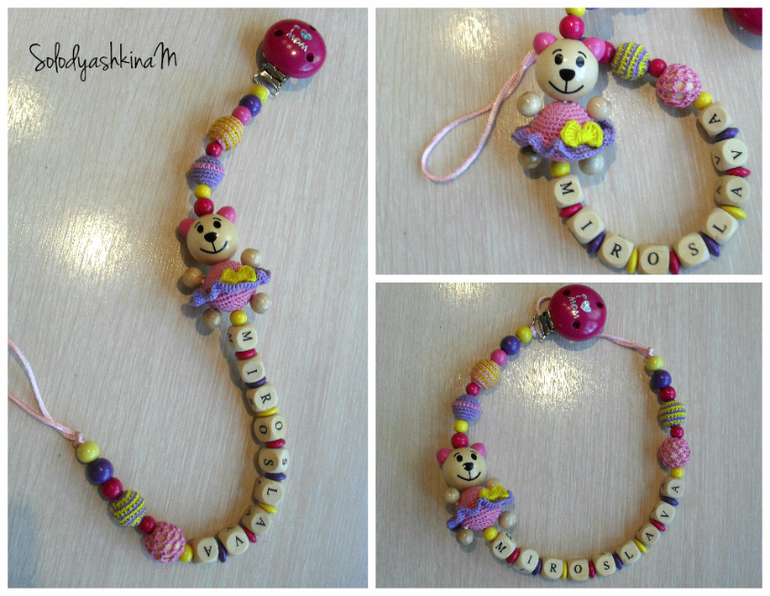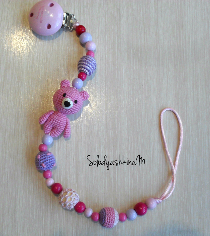 Подарки, игрушки, погремушки для новорожденных.Продолжаю маньячить держателями для сосок. Вот последние работы. Две клипсы для близняшек. Мама захотела чтобы были разные но для близняшек. ))) И еще одна клипса завтра уезжает в Питер. Повезет им немного нашей жары. Жалко только фоткать не умею, краски не получается передать.