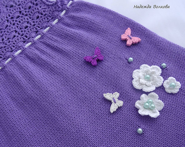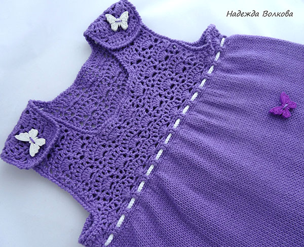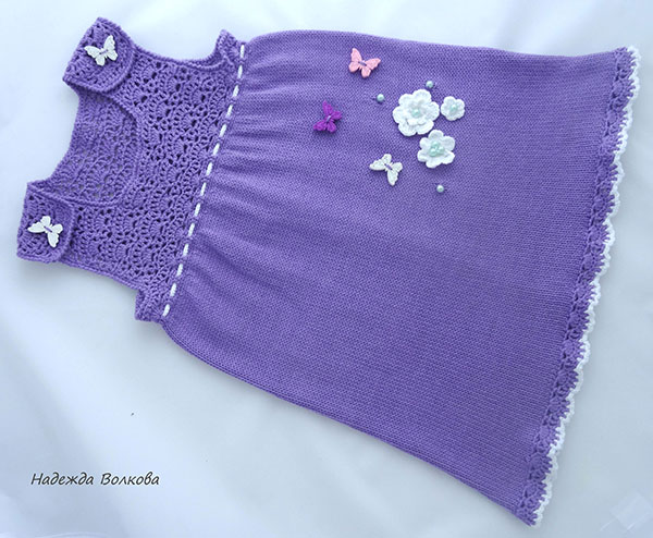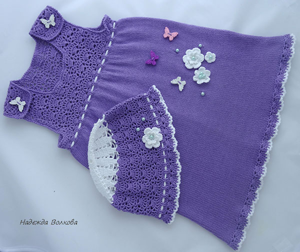 Вязание крючком (РАБОТЫ И СХЕМЫ)Давно я не вязала платья, совсем игрушки меня от одежды отвернули, но тут для обменчика обещала. Сарафанчик примерно на годовалую малышку, пряжа Новелти, подол машинная вязка, остальное крючком. Ну и панамка в комплектик.