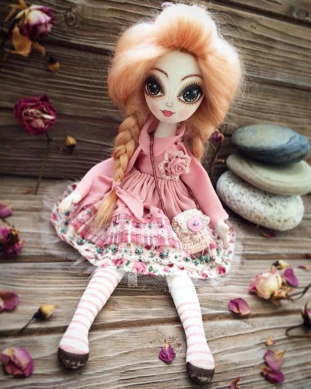 Кукольный мир - человекоподобные куклыМоя новая куколка появилась на свет :) Больше фото под Cut. Выполнена из текстиля, личико, ножки и ручки загрунтованы, роспись - акриловая краска и пастель. Волосики - натуральная козочка, очень мягкие, можно расчесывать и делать прически:) Одежда снимается. Все сделано в ручную, с любовью и трепетом:)