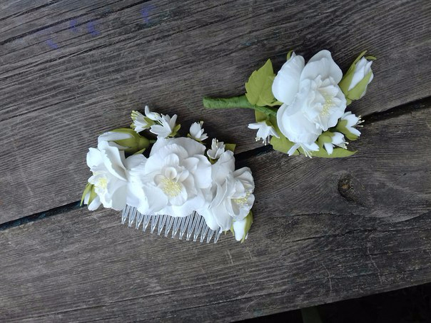 Цветы из ткани и форма. Канзаши. Украшения для волос.Хочется показать одну из последних и свежих моих работ. Эта работа была сделана для невесты, а самое интересное, что невесту я сама не видела, а все для нее придумала и заказала ее мама)