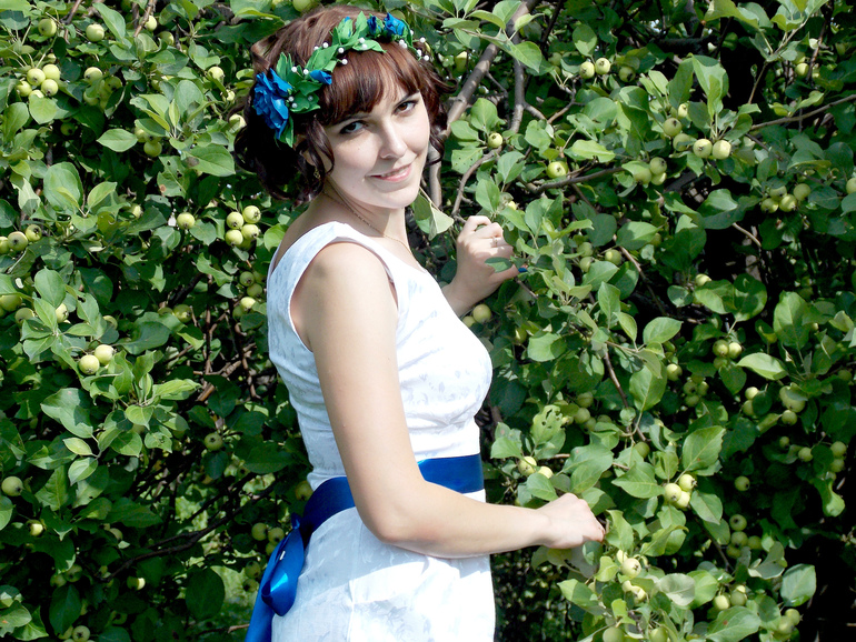 Я попозже добавлю фото поближе, она ко мне на пятнадцать минут забежала пофотографироваться и убежала))) А само изделие я не фотографировала еще, делаю дома ремонт.... Такой аврал...