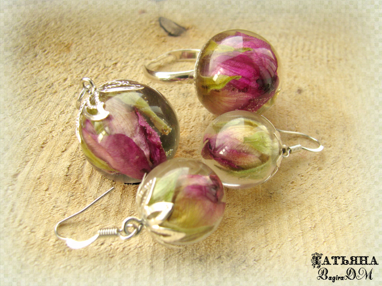 Мой любимый набор - бутоны роз. Серьги, кулон и колечко