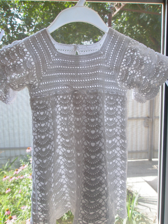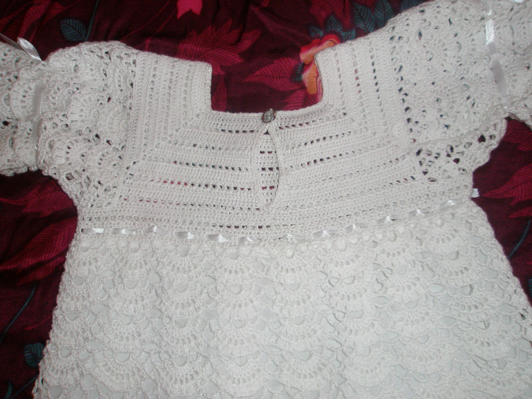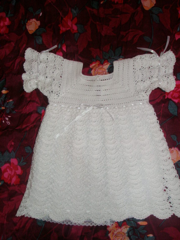 Вязание крючком (РАБОТЫ И СХЕМЫ)Затеялась я весной осваивать крючок...а все ради крестильного платья для дочки. Вязала-вязала, а дочка в это время ела-ела...и, закончив в мае, я поняла, что платье будет мало. Благо вместе со мной крестила свою малютку моя сестра. Пришлось экстренно вязать другое платье, побольше. Плюс повязки на голову. И вот что получилось