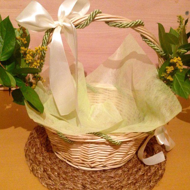 Татьяна, спасибо за критику:)) Лента атласная цвета молока, в жизни смотрится очень изящно, тем чтоо не широкая. Края наискосок подрезали, фото раньше было сделано. Шнурок цвета зеленого чая, как акцент на основную цветовую гамму сливочно-фисташковую, потому и содержимое корзинки планируем в этих цветовых сочетаниях.