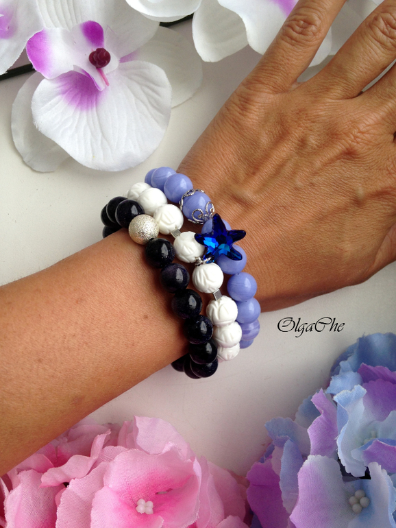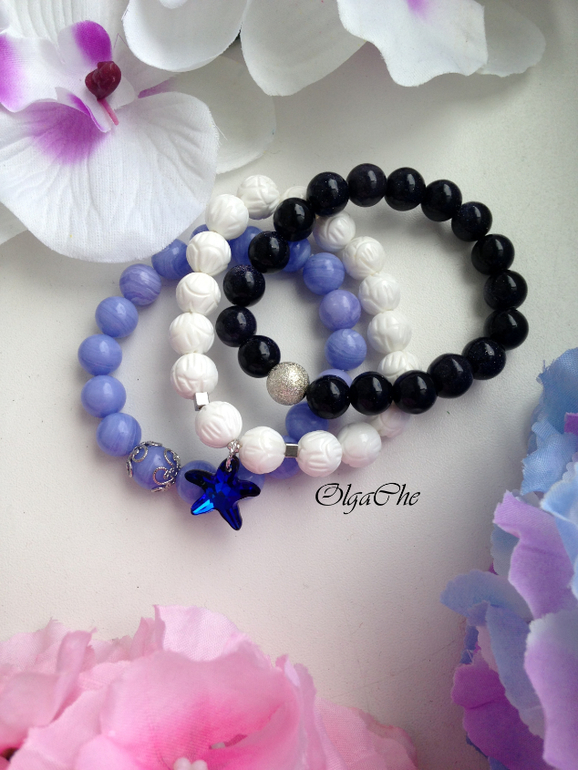 Сет "Звезда" выполнен из авантюрина, резного коралла и агата.