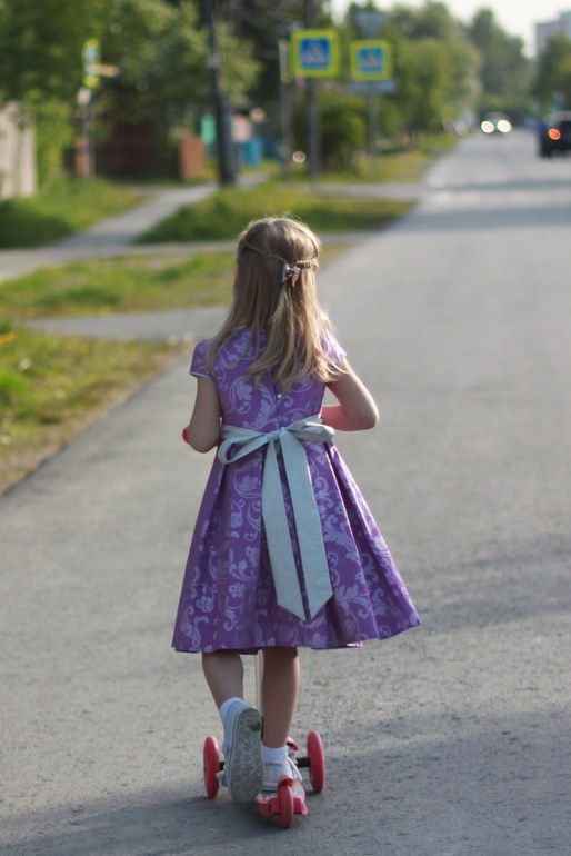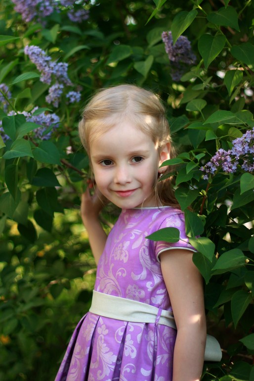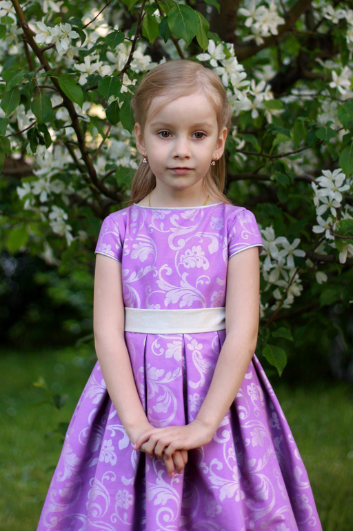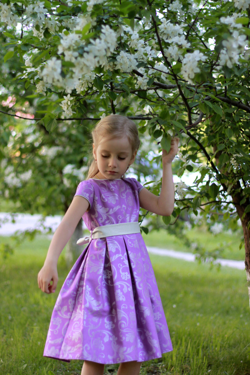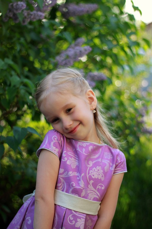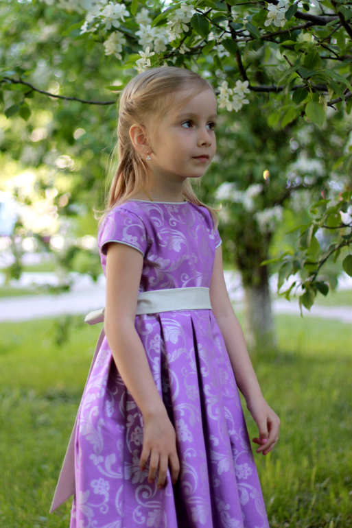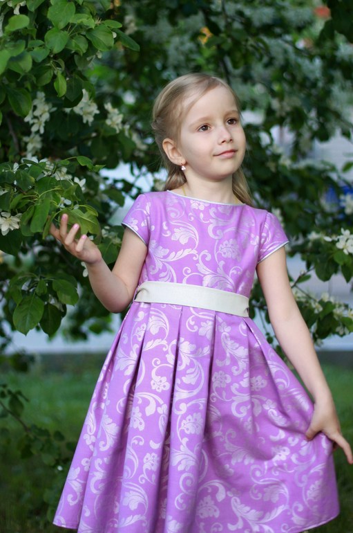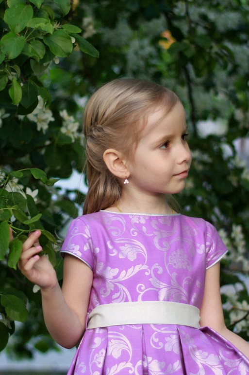 Полинка сказала, что в этом платье она похожа на принцессу Софию, поэтому оно у нее одно из самых любимых. Сшито из корейского хлопка с серебристыми узорами. Я, как сорока, с рождением дочки полюбила блестяшки, перламутр, стразы, а Полинка мне в этом не уступает, мы с ней на "одной волне" во всем, вообщем родила себе просто идеальную подружку