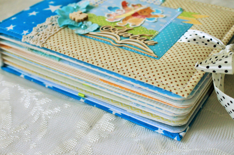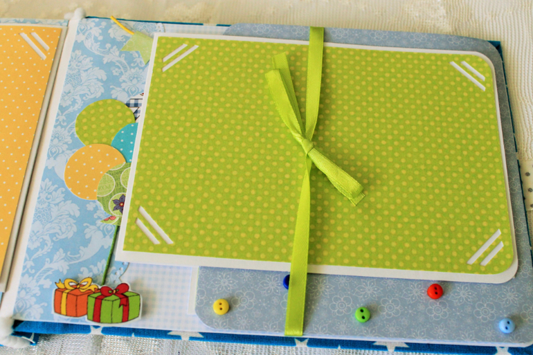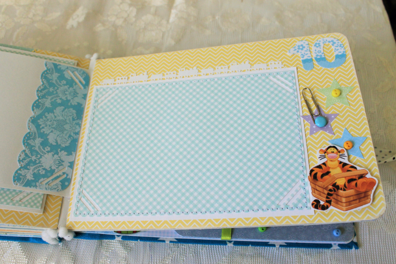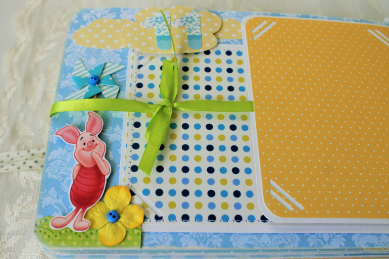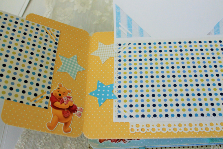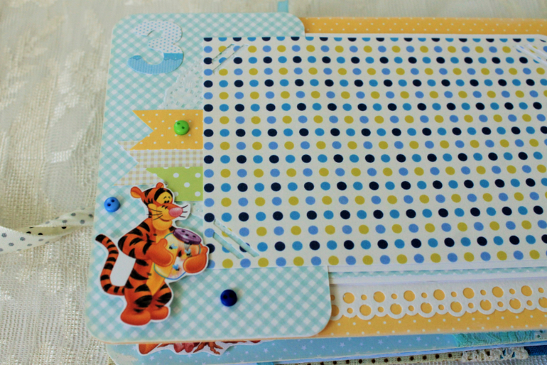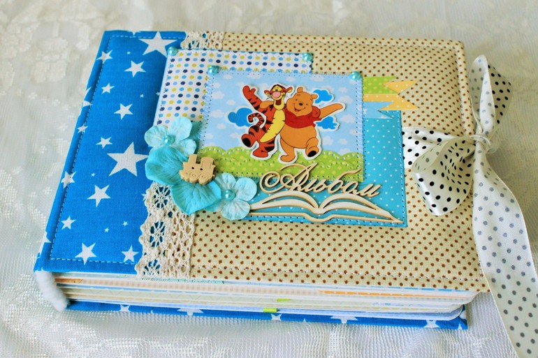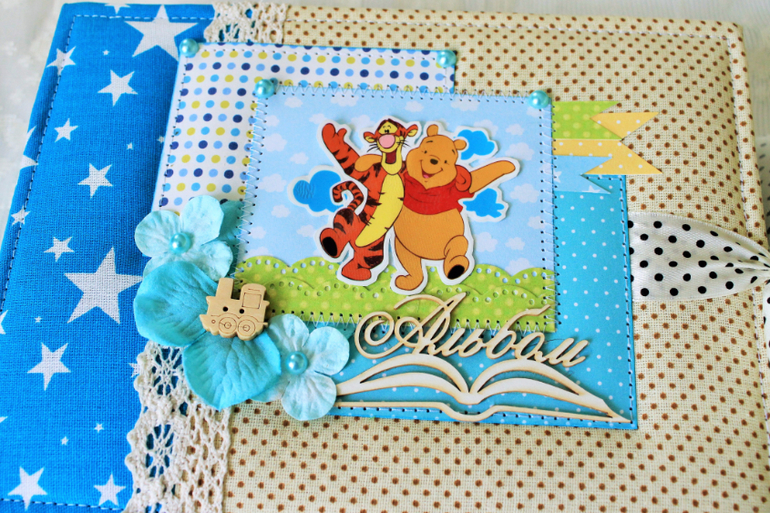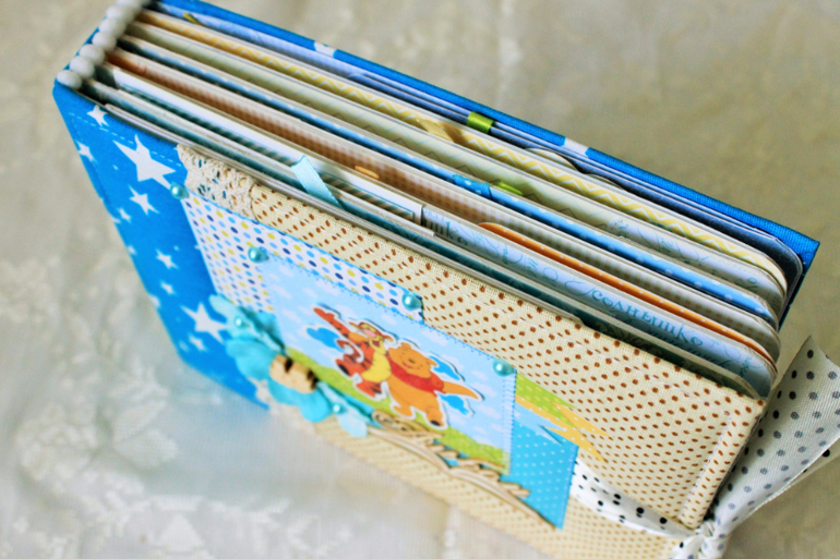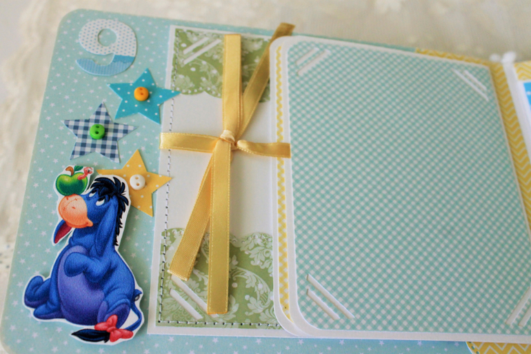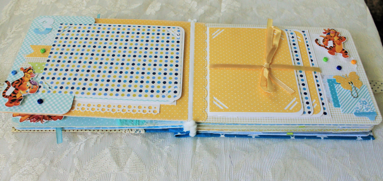 СкрапбукингПервый раз участвовала в СП Альбом с Винни Пухом "обратно в детство", было интересно! Альбомчик формата А5 (15*21см), 7 разворотов, от ожидания до 1 года