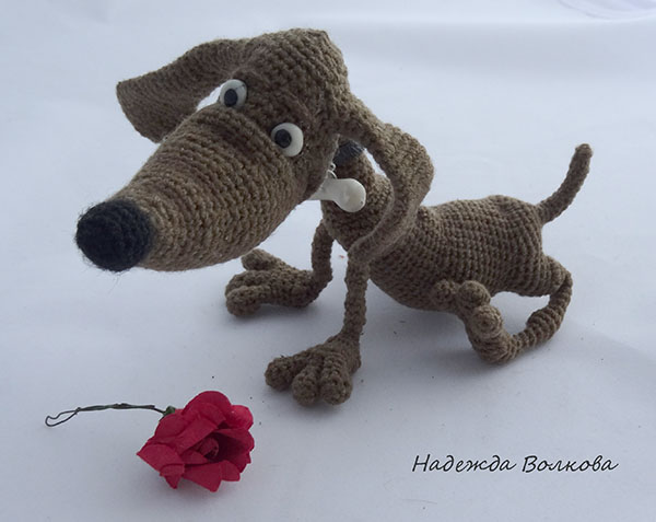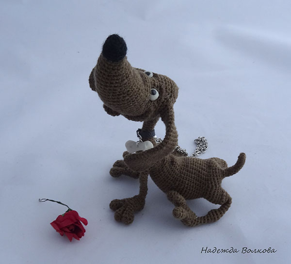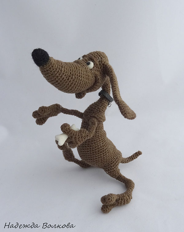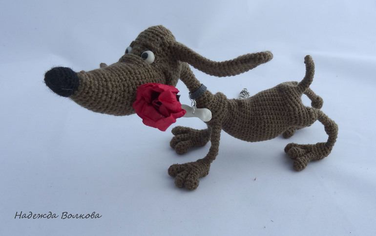 Собачка. далась мне не легко.очень трудно вязать такую малютку,особенно вокруг каркаса, но я ее победила и очень довольна))